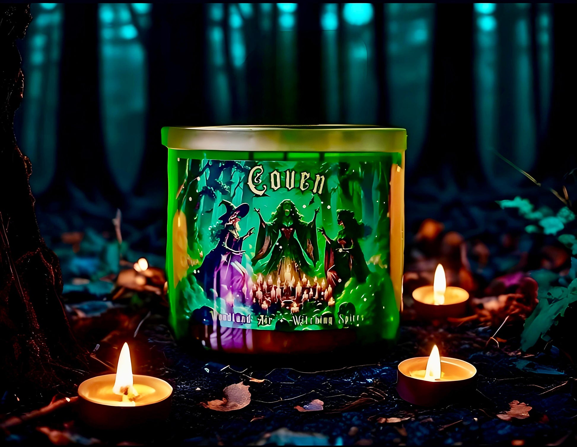Step into the enchanted depths of the witch's woods and surrender to the captivating charm of Coven. This mystical blend weaves a spell of woodland whispers and bewitching spices, capturing the essence of the forest with its notes of earthy fir, zesty orange, fiery ginger, warming cinnamon, exotic cardamom, and comforting nutmeg. It is as if you have stumbled upon a sacred casting circle while wandering amidst ancient trees.