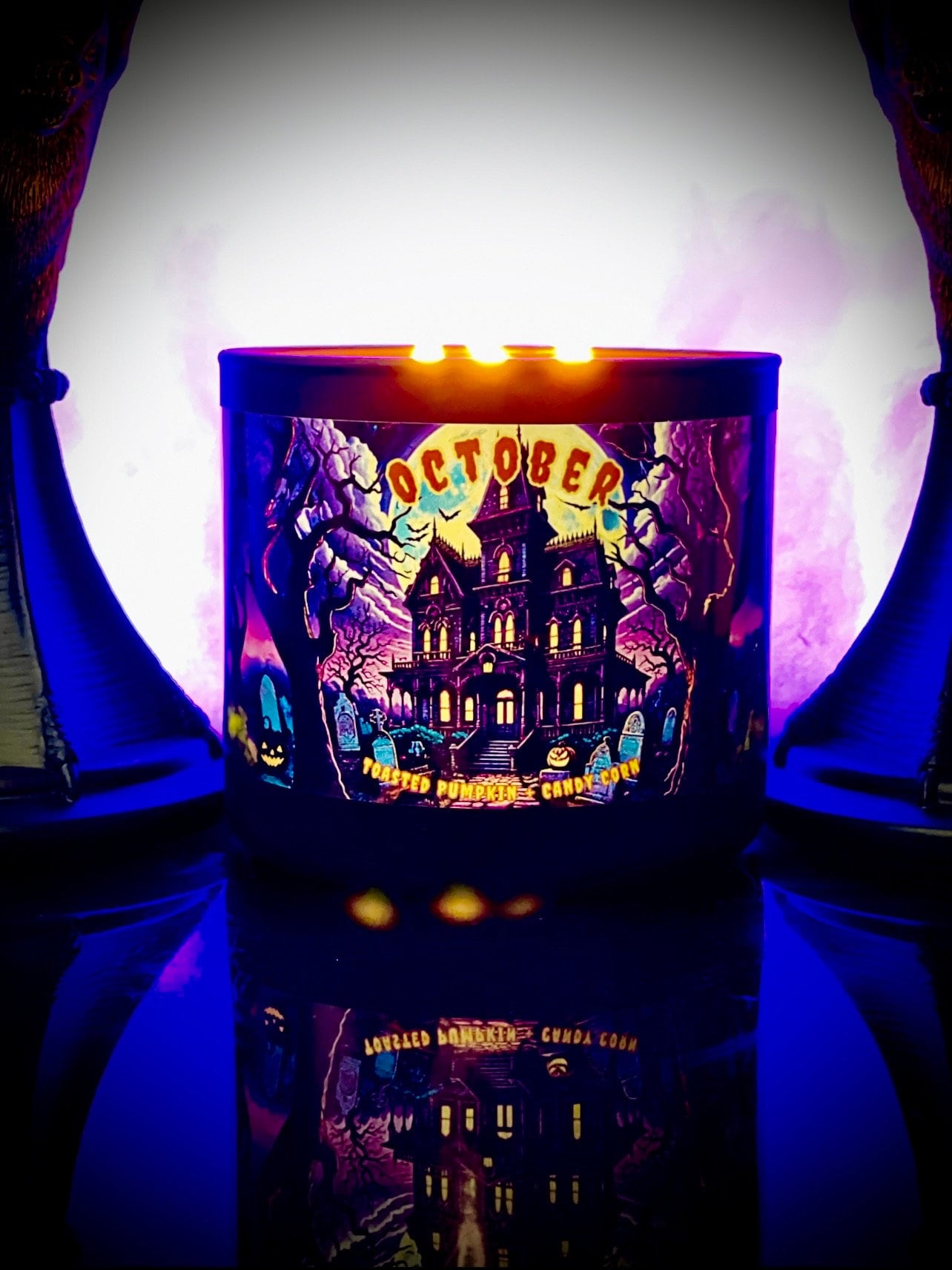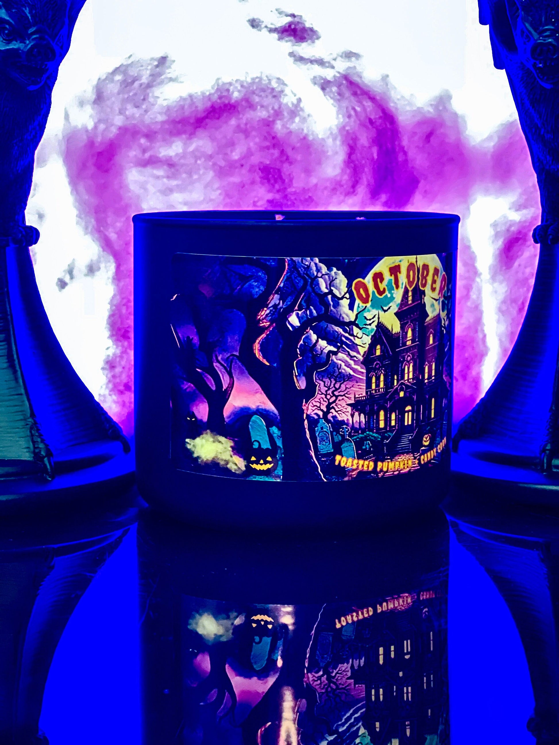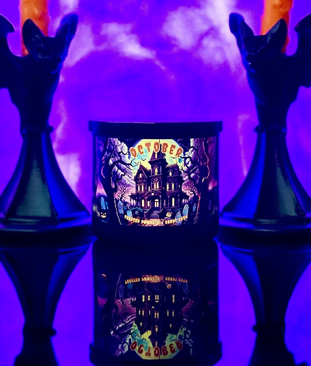 Our October candle pays homage to everything we cherish about this eerie month. From haunted houses and black cats to pumpkins, scary movies, sweet treats, and mysterious sounds that go bump in the night. It offers a spookier twist on the traditional pumpkin scent, with a hint of smokiness that sets a chilling tone. The blend of toasted pumpkin, autumnal spices, and buttery candy corn will leave you yearning for October all year long.